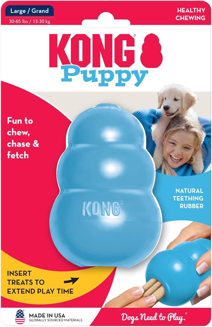 KONG Puppy - Natural Teething Rubber Chew Toy for Dogs - Stuffable Dog Toy for Extended Playtime - Chew & Fetch Toy for Puppies - For Large Puppies - Blue