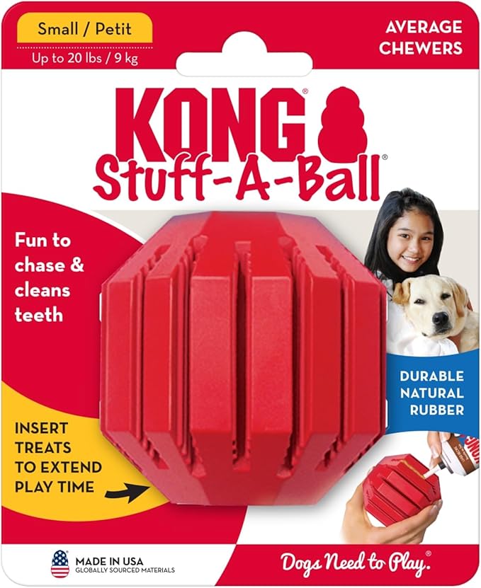 KONG Stuff-A-Ball - Durable Chew Toy for Dogs - Natural Rubber Dog Toy for Dental Health - Pet Toy for Chewing & Teeth Cleaning - Stuffable Toy for Dog Treats & Snacks - for Small Dogs