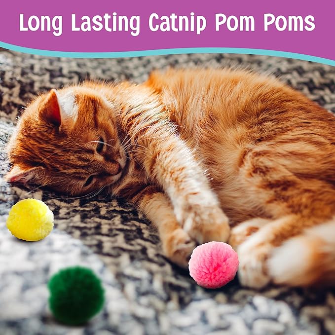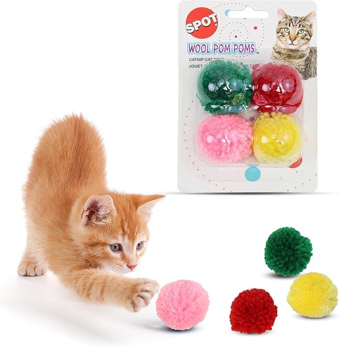 SPOT Wool Pom Poms Cat Toy - Interactive Wool Balls Cat Toy with Catnip for Cats and Kittens to Bite, Swat and Chase - 1.5 inch, 4 pcs