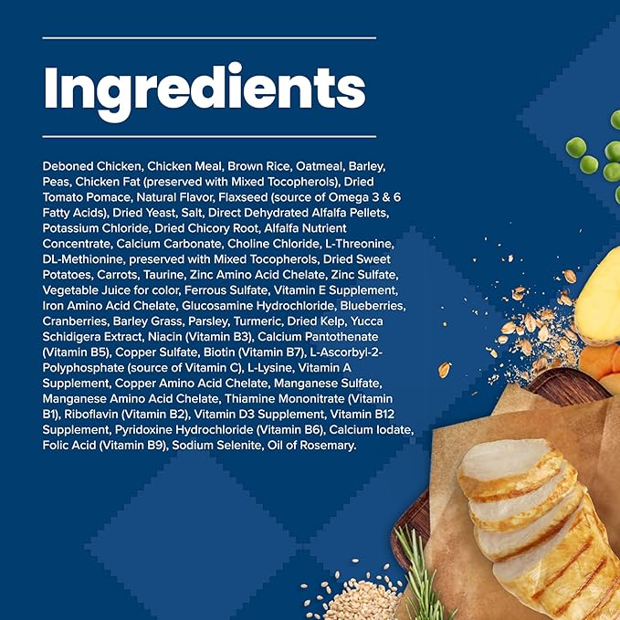 - REAL CHICKEN FIRST: Blue Buffalo's premium dog food features high quality deboned chicken as the primary ingredient; brown rice; cranberries and vegetables for a balanced diet; and high quality protein that promotes strong muscles