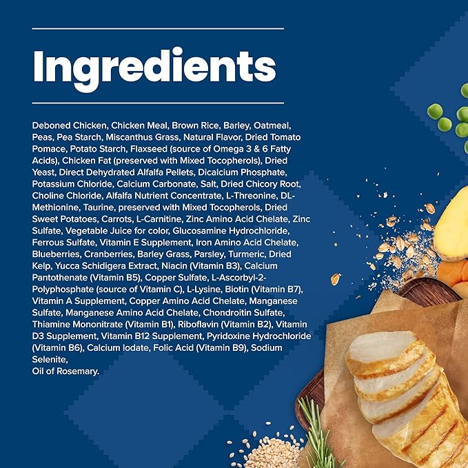- REAL CHICKEN FIRST: Blue Buffalo foods always feature real meat as the first ingredient; high-quality protein from real chicken helps your dog build and maintain healthy muscles; plus they contain wholesome whole grains, garden veggies and fruit