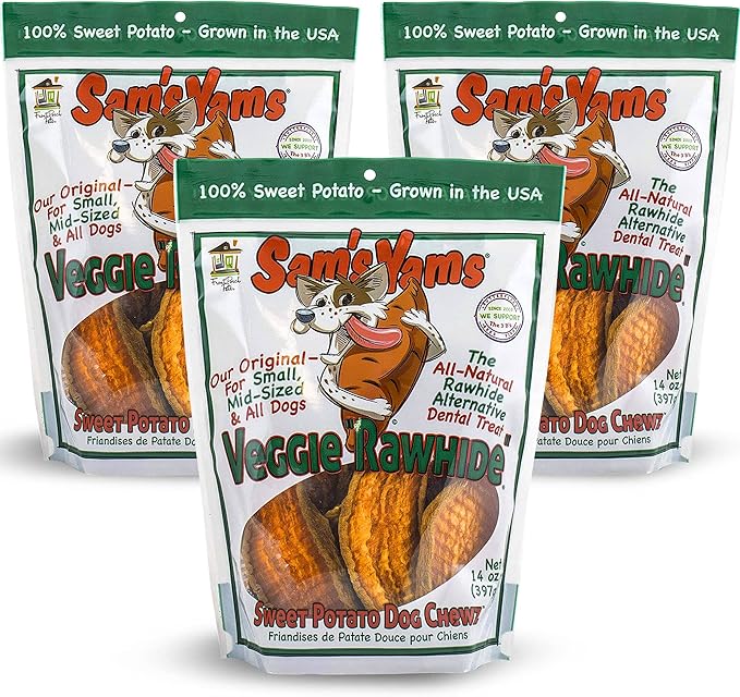 Sam's Yams Sweet Potato Dog Chewz 14oz Bags-Veggie Rawhide,3-Pack