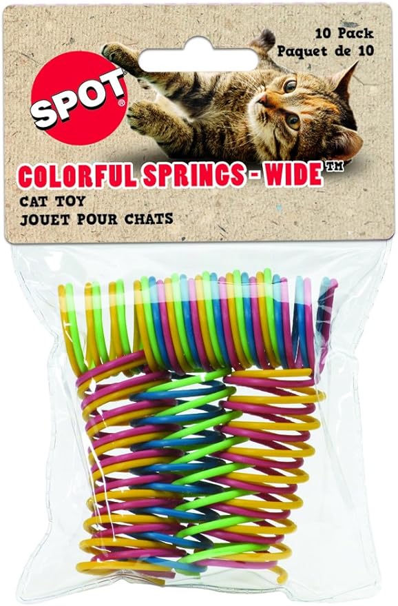 SPOT Colorful Cat Spring Toys – 2" Bouncy Coils for Indoor Cats & Kittens to Swat, Chase, Bite – Interactive Enrichment Toys, Safe Plastic, 10-Pack, Multi-Color