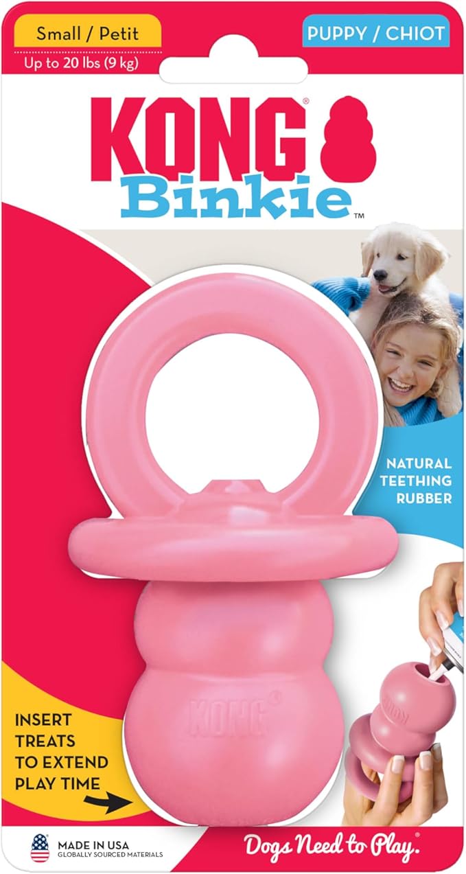 KONG Puppy Binkie - Pacifier Dog Toy for Puppies - Stuffable Treat Chew Toy for Treats - Durable Natural Rubber for Teething Puppy - for Small Puppies - Blue