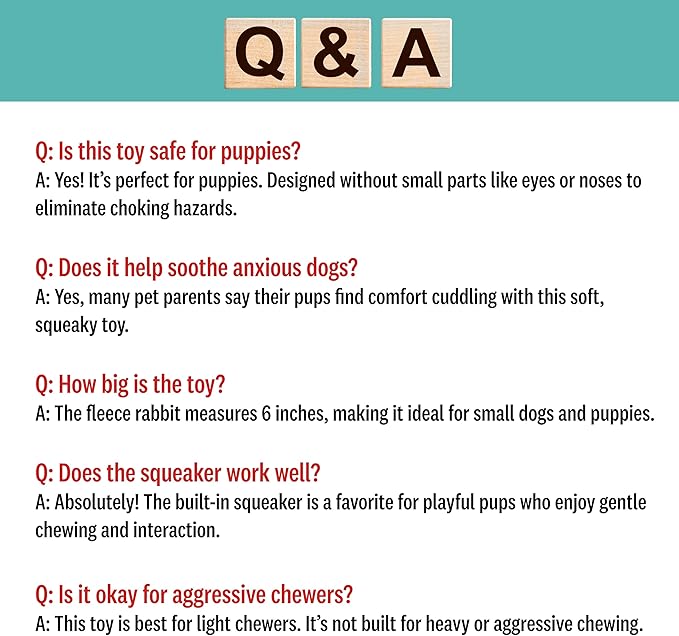 About This Soft & Plush Comfort Toy: Ultra-soft fleece rabbit dog toy designed to comfort puppies, small dogs, and seniors.... Read more