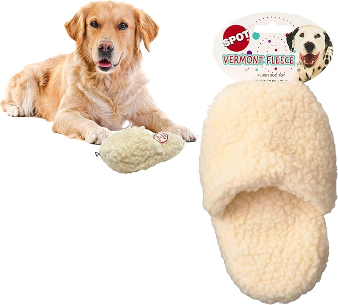 SPOT 7.5in Vermont Style Fleece Slipper Dog Toy – Soft Plush Squeaky Comfort Toy for Small & Medium Dogs and Puppies – No Plastic Parts – Light Chewer Safe – Calming & Cuddly Pet Toy