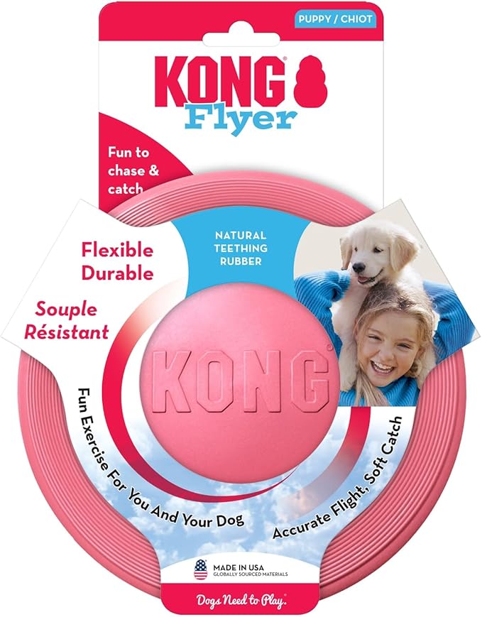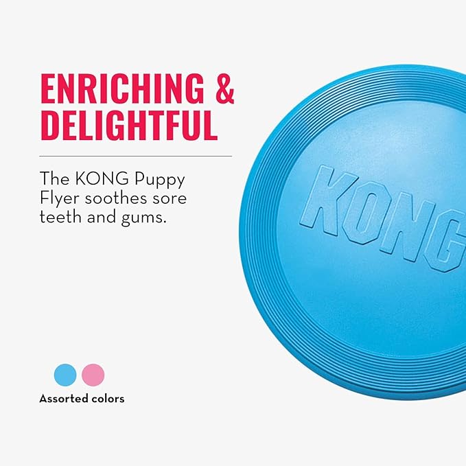KONG Puppy Flyer - Soft Rubber Flyer Dog Toy - Flying Disc Dog Toy for Puppies - Gentle Rubber Toy for Growing Puppies - for Small Puppies - Randomly Provided Color