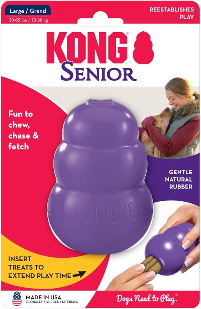 KONG Senior - Dog Toy with Gentle, Natural Rubber - Durable Dog Toy for Older Dogs - Use Treats with Stuffable Chew Toy - Treat Toy for Chewing & Fetching - for Large Dogs