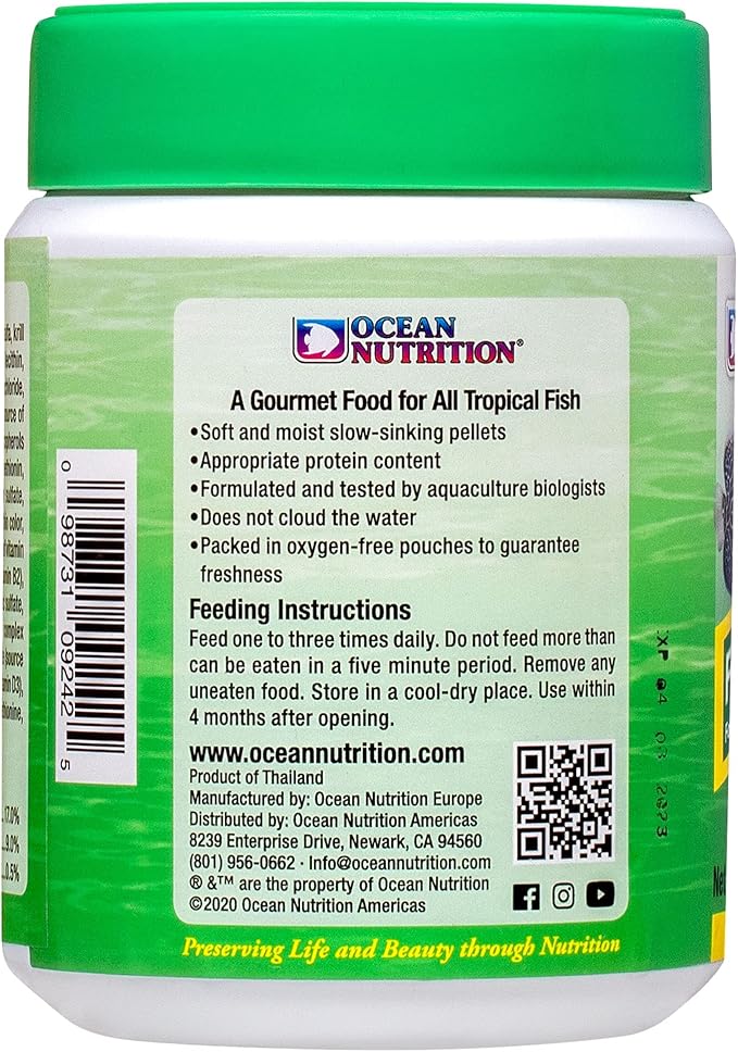 Ocean Nutrition Formula Two Pellets - Fish Food for Herbivorous & Omnivorous Marine Tropical Fish, High Protein(40%) - 7 oz (200 g) Small Pellets