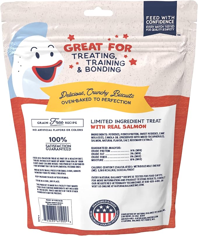 Natural Balance Limited Ingredient Rewards Crunchy Biscuits, Grain-Free Dog Treats for Adult Dogs of All Breeds, Salmon Recipe, 14 Ounce (Pack of 1)
