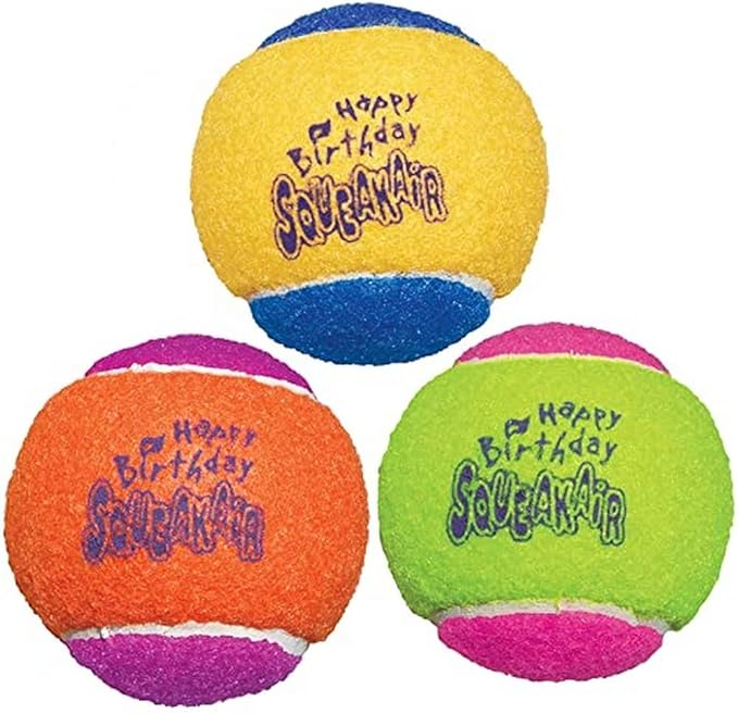 KONG - SqueakAir Birthday Balls (3 Pack) – Durable Non-Abrasive Fetch Toy with Built-in Squeaker, Assorted Colors