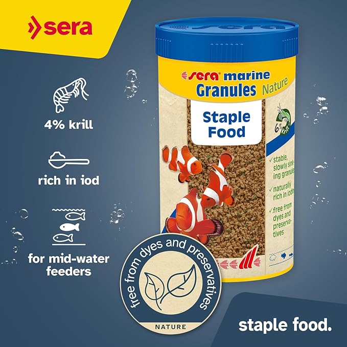 sera Marine Granules Nature Staple Food 3.5oz | for Saltwater Fish | Free of Dyes and Preservative | with Marine Algae, Spirulina & Krill | Ideal for Mid-Water & Bottom Feeders