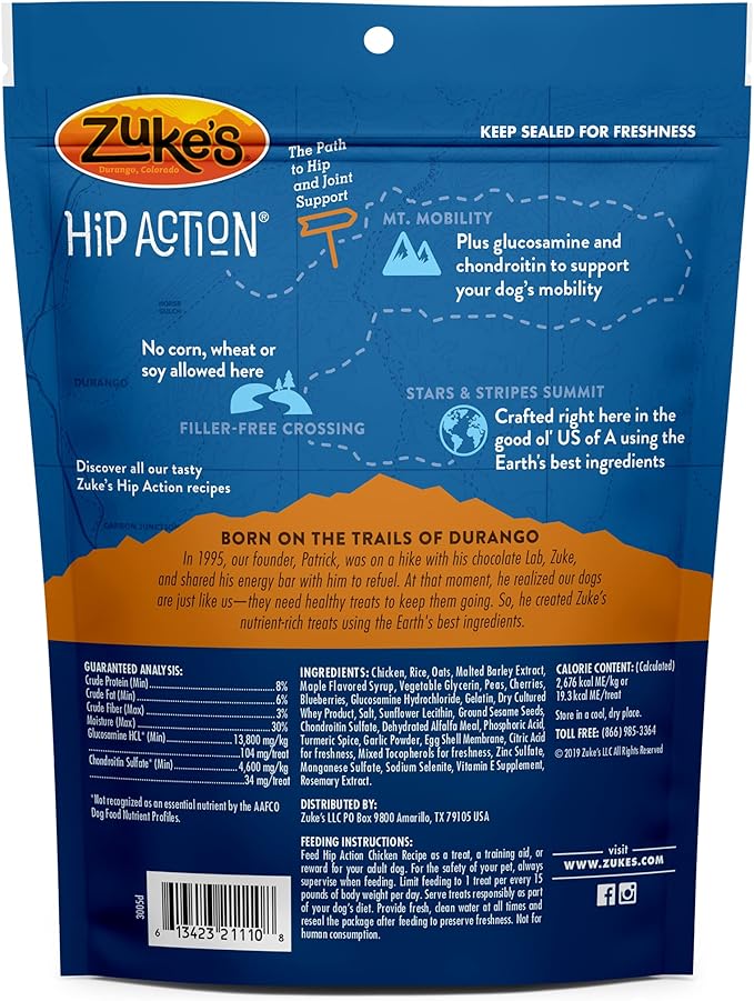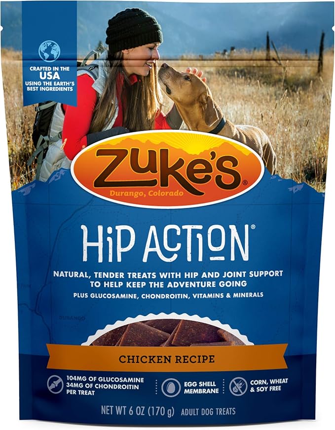 Zuke’s Hip Action, Hip And Joint Support Treats, Soft And Chewy Natural Dog Chicken Treats, Chicken Recipe - 6.0 OZ Bag