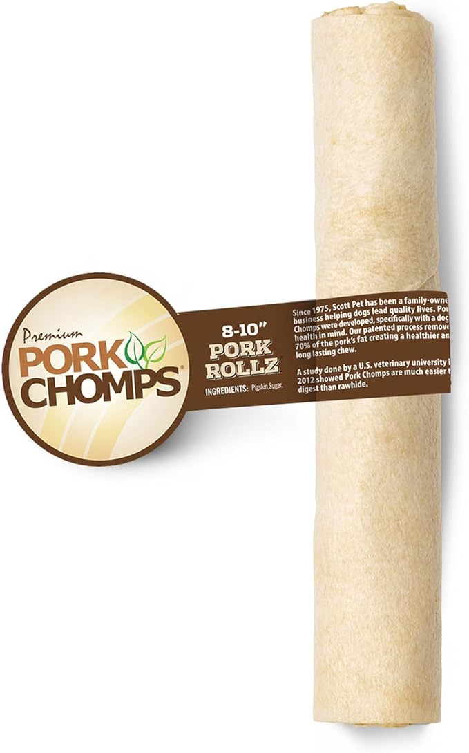 Pork Chomps Baked Pork Skin Dog Chew, 8-inch Roll, 1 Count