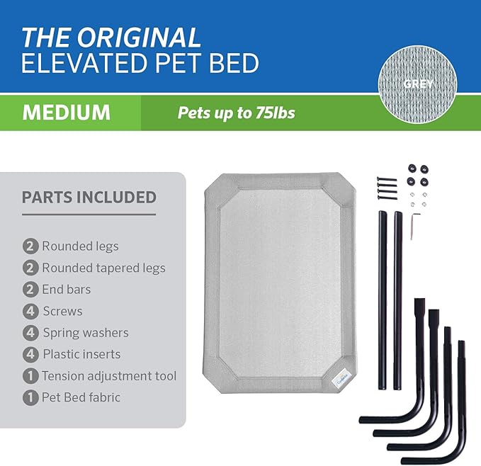 Coolaroo Original Elevated Dog Bed - Breathable Off-The-Ground Pet Bed with Cooling Fabric, Joint Relief & Moisture-Resistant Fabric, 100% Recyclable, Easy Clean, Grey, Medium
