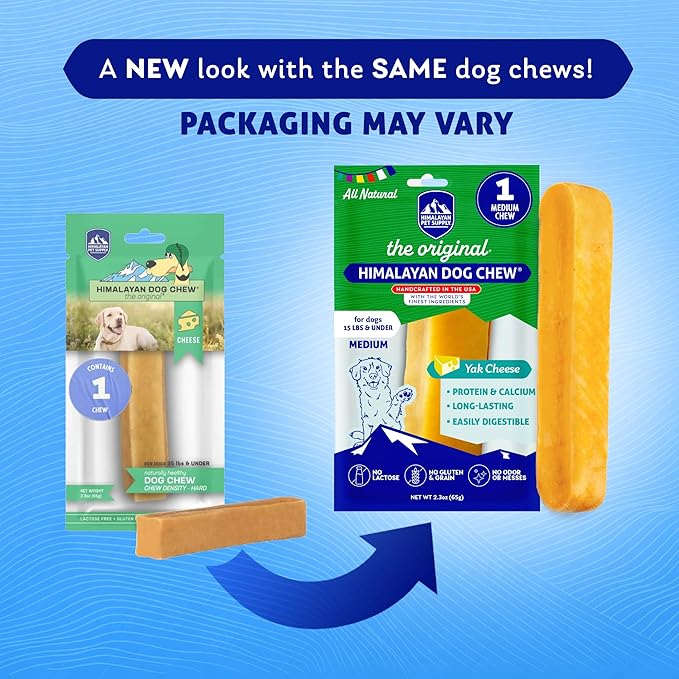Himalayan Dog Chew Original Yak Cheese Chew, 1 Medium Stick, 2.3 oz, Gluten Free, Healthy Treats, Grain & Lactose Free 100% Natural, Long Lasting, for Dogs Under 35 lbs