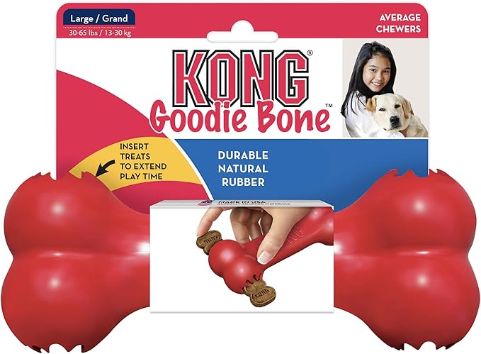 KONG Goodie Bone - Classic Durable Natural Rubber Dog Bone, Supports Mental Engagement - Treat Dispensing - Red - for Large Dogs