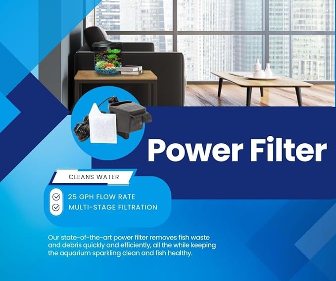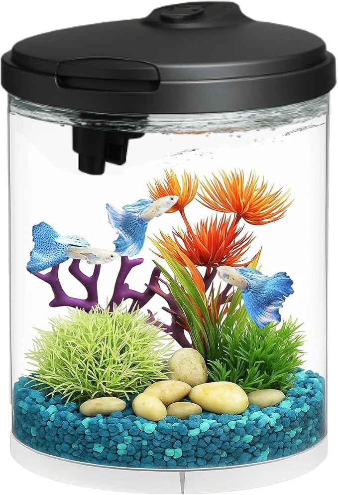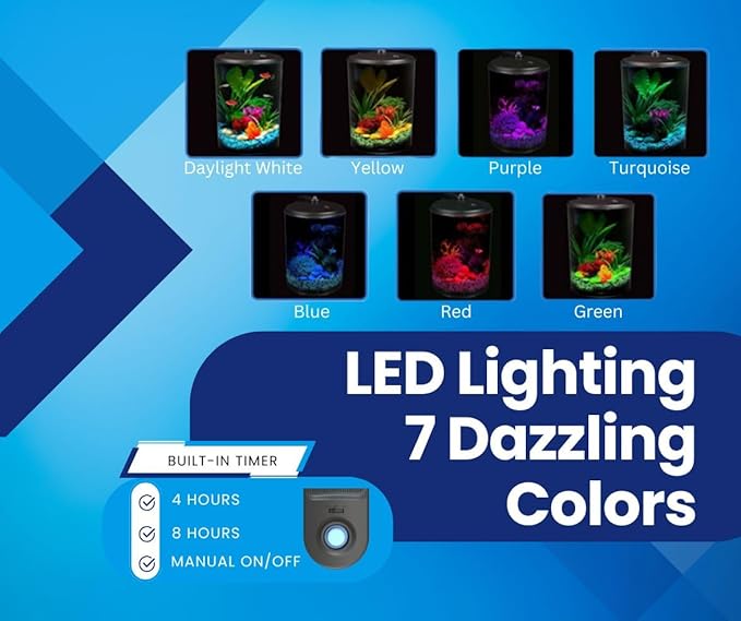 Koller Products AquaView 2-Gallon Plastic 360 Aquarium with Power Filter & LED Lighting for Tropical Fish - Betta Fish