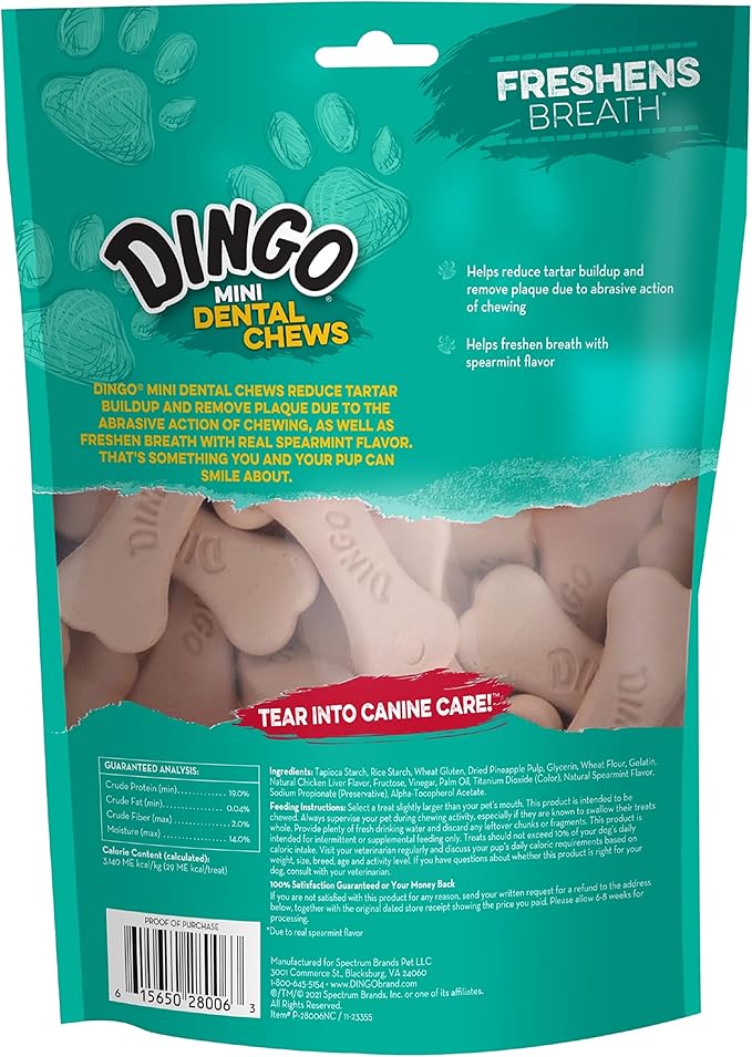 About This TEAR INTO TARTAR CARE: Give your dog one Dingo Dental Mini Chew per day to help protect their... Read more