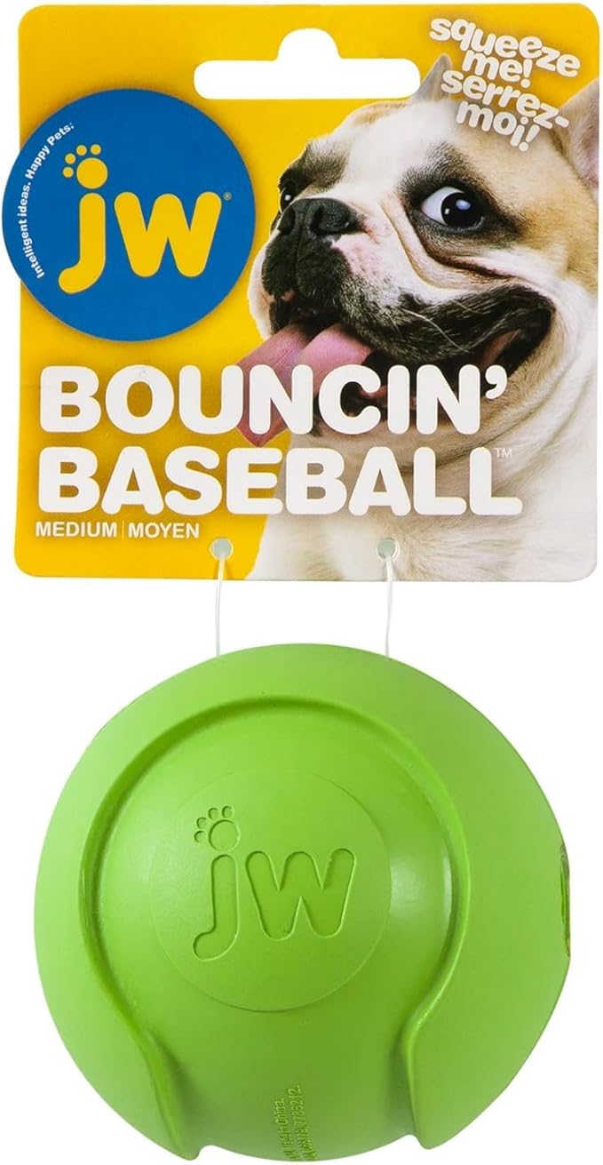 JW Pet Company iSqueak Bouncin' Baseball Dog Toy, Medium (Colors Vary)