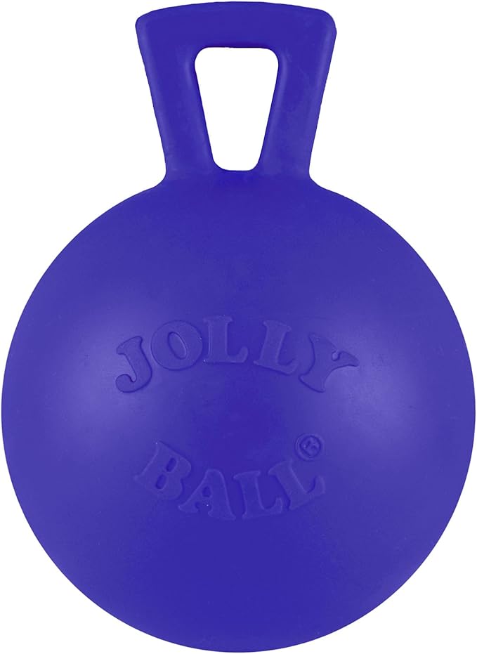 Jolly Pets Tug-n-Toss Heavy Duty Dog Toy Ball with Handle, 4 Inches/Petite, Blue (404 BL),Small Breeds