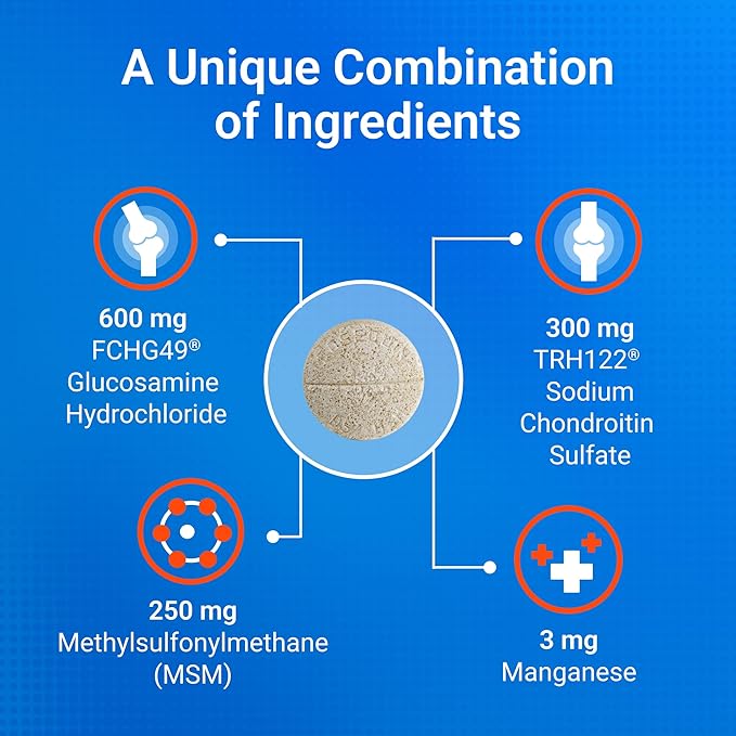 - Contains Glucosamine for Dogs - Cosequin contains glucosamine hydrochloride (FCHG49) and sodium chondroitin sulfate (TRH122), plus methylsulfonylmethane (MSM). This unique combination of ingredients supports healthy joints.
