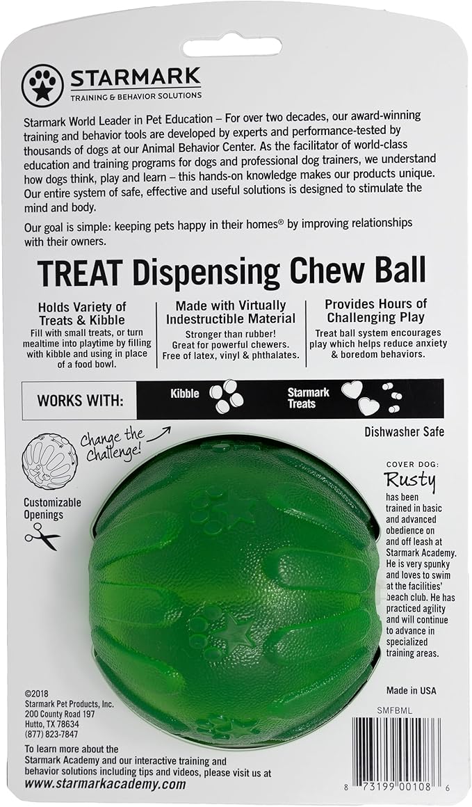 Starmark Treat Dispensing Chew Ball Tough Dog Toy, Medium/Large for Large Breeds