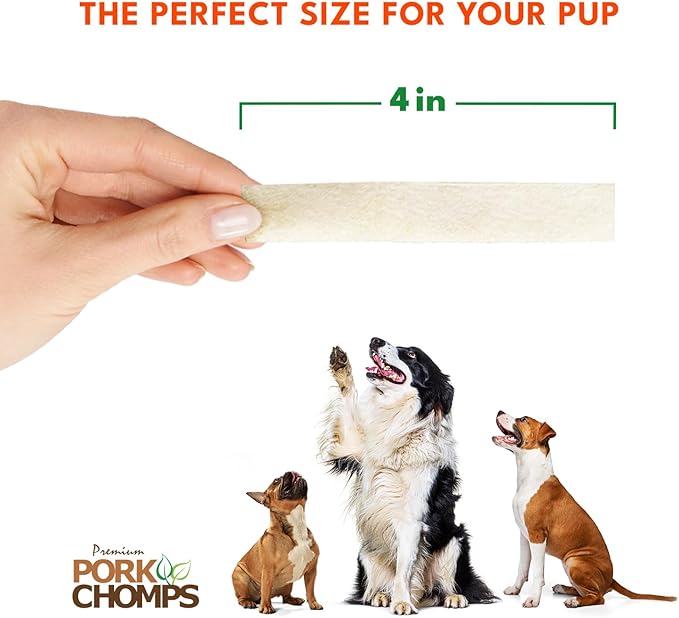 Pork Chomps Baked Pork Skin Dog Chews, 4-inch strips, 10oz Bag
