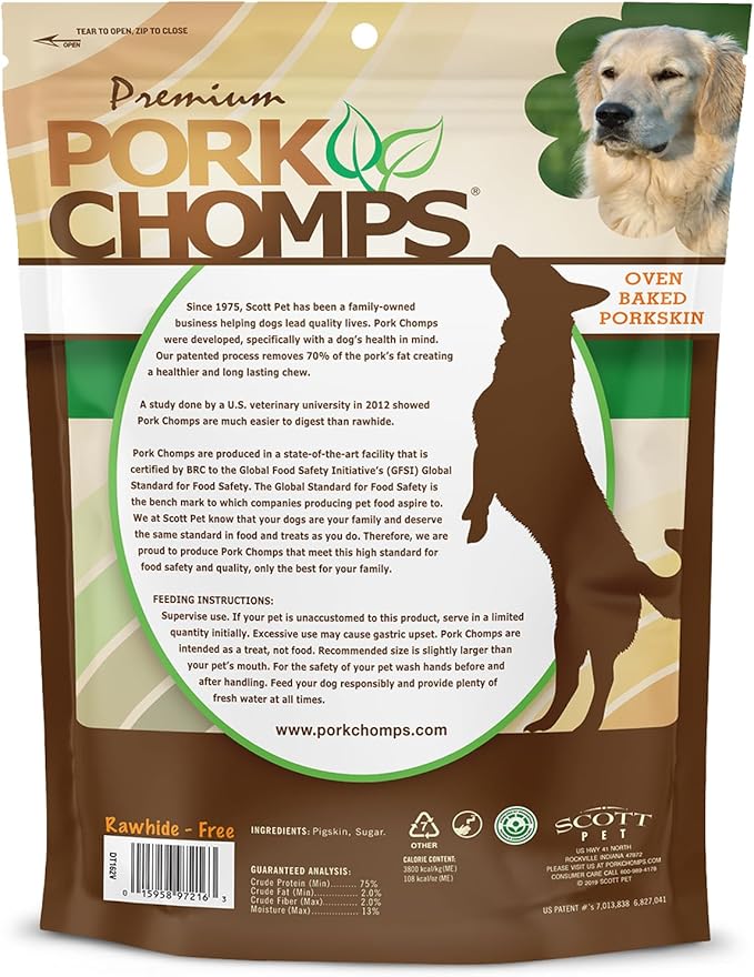 About This 100% Rawhide Free Dog Chews - Pork Chomps oven baked pork skin is long lasting, low fat, &... Read more