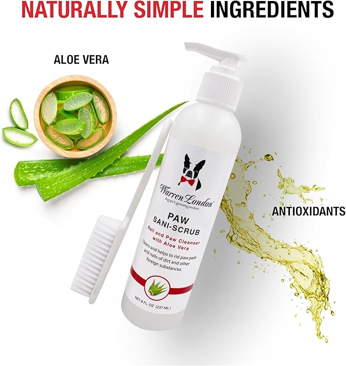 Warren London Paw Scrub – Deep Cleaning Paw & Nail Cleanser with Aloe Vera – Removes Dirt & Grime – Includes Scrub Brush – Made in USA - 8 oz