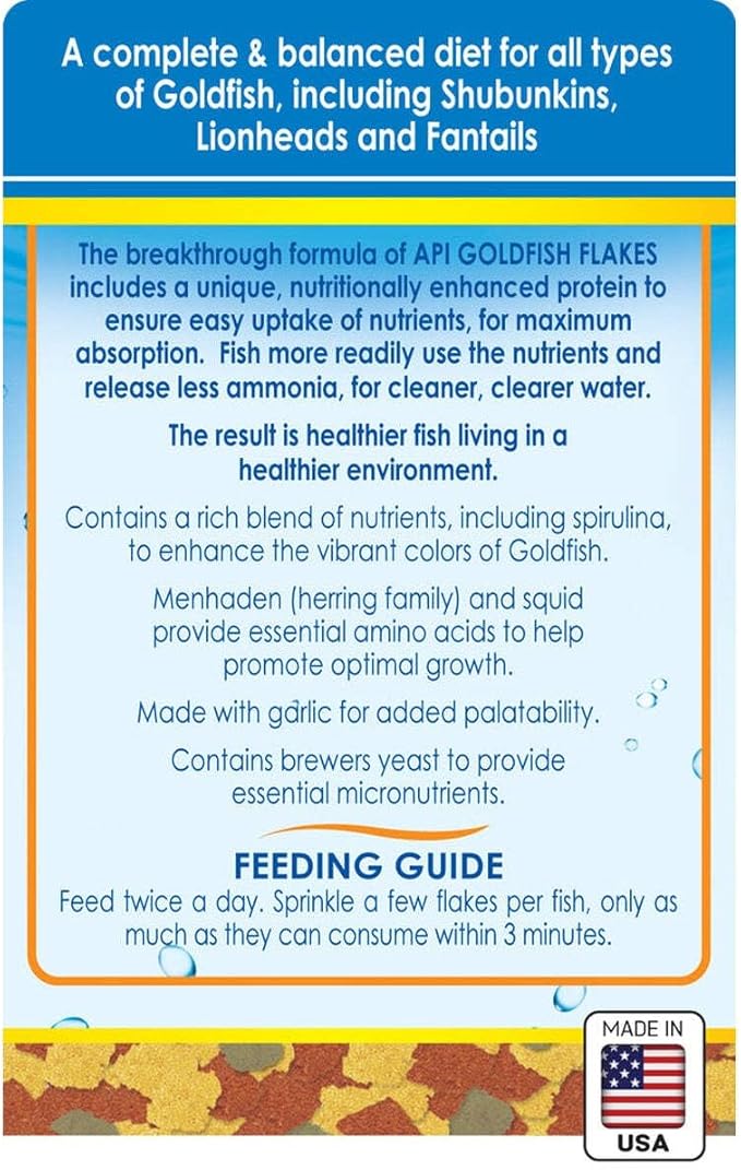 About This Contains one (1) API GOLDFISH FLAKES Fish Food 5.7-Ounce Container Made with nutrient rich blend to provide goldfish... Read more