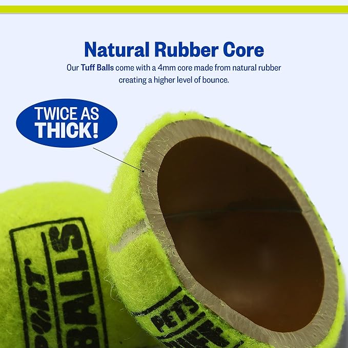 PetSport Tuff Ball - Medium Tennis Balls for Dogs, Chew Toy for Aggressive Chewers, Fetching, Natural Rubber, Certified Non-Toxic, Won't Wear Down Teeth - 2.5" (12 Pack)