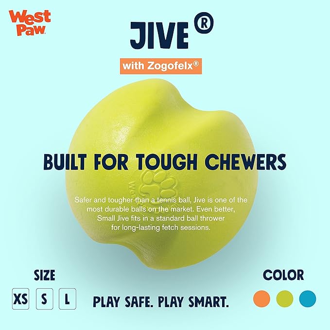 WEST PAW Zogoflex Jive Ball Dog Chew Toy – Bouncing Toys for Dogs, Fetch, Catch, Chewing, Play – Floatable, Recyclable Balls – Latex-Free, Non-Toxic, Dishwasher Safe Dog Toy, X-Small 2", Granny Smith