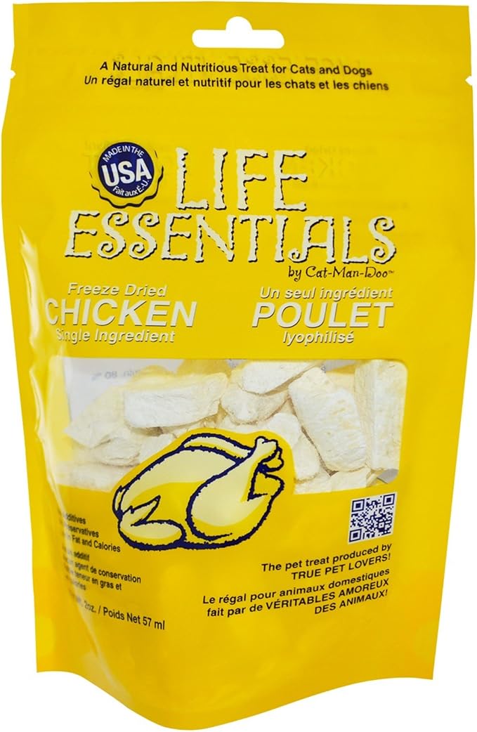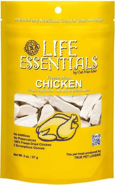 LIFE ESSENTIALS BY CAT-MAN-DOO All-Natural Freeze Dried Chicken Treats for Dogs & Cats Free of Grains, Fillers, Additives and Preservatives Proudly Made in The USA - (2 oz. Bag)