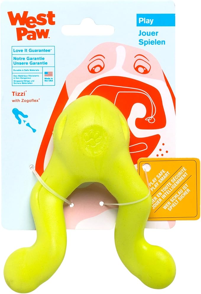 West Paw Zogoflex Tizzi Interactive Treat Dispensing Dog Fetch Play Toy, 100% Guaranteed Tough, It Floats!, Made in USA, 4.5-Inch Small, Granny Smith