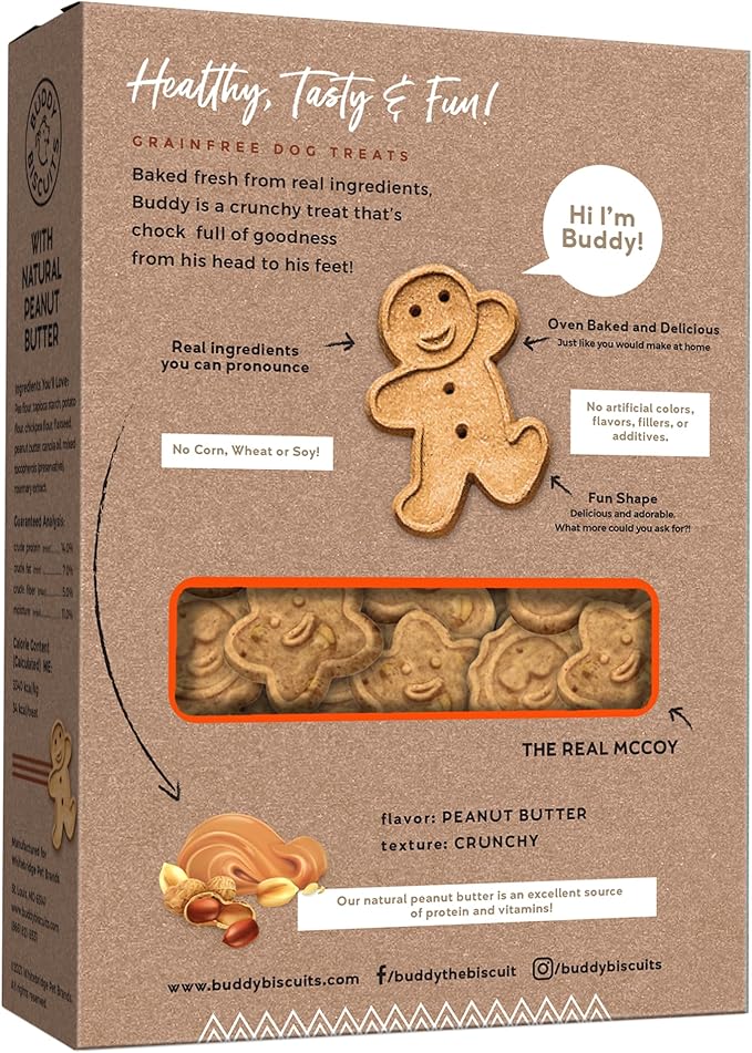 Buddy Biscuits 14 oz. Box of Grain-Free Crunchy Dog Treats Made with Natural Peanut Butter