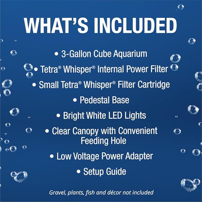 About This AQUARIUM KIT: 3-gallon, cube-shaped complete aquarium kit perfect for betta fish, goldfish, guppies, or small tropical fish. INCLUDES... Read more