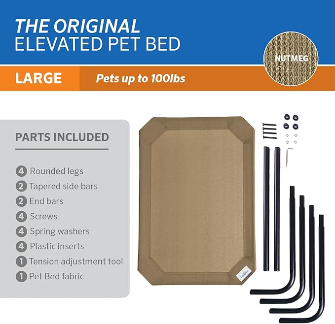 Coolaroo Original Elevated Dog Bed - Breathable Off-The-Ground Pet Bed with Cooling Fabric, Joint Relief & Moisture-Resistant Fabric, 100% Recyclable, Easy Clean, Nutmeg, Large