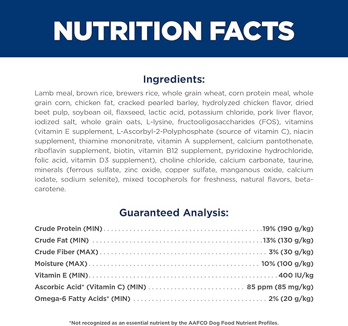 Hill's Science Diet Adult 1-6, Adult 1-6 Premium Nutrition, Dry Dog Food, Lamb & Brown Rice, 33 lb Bag