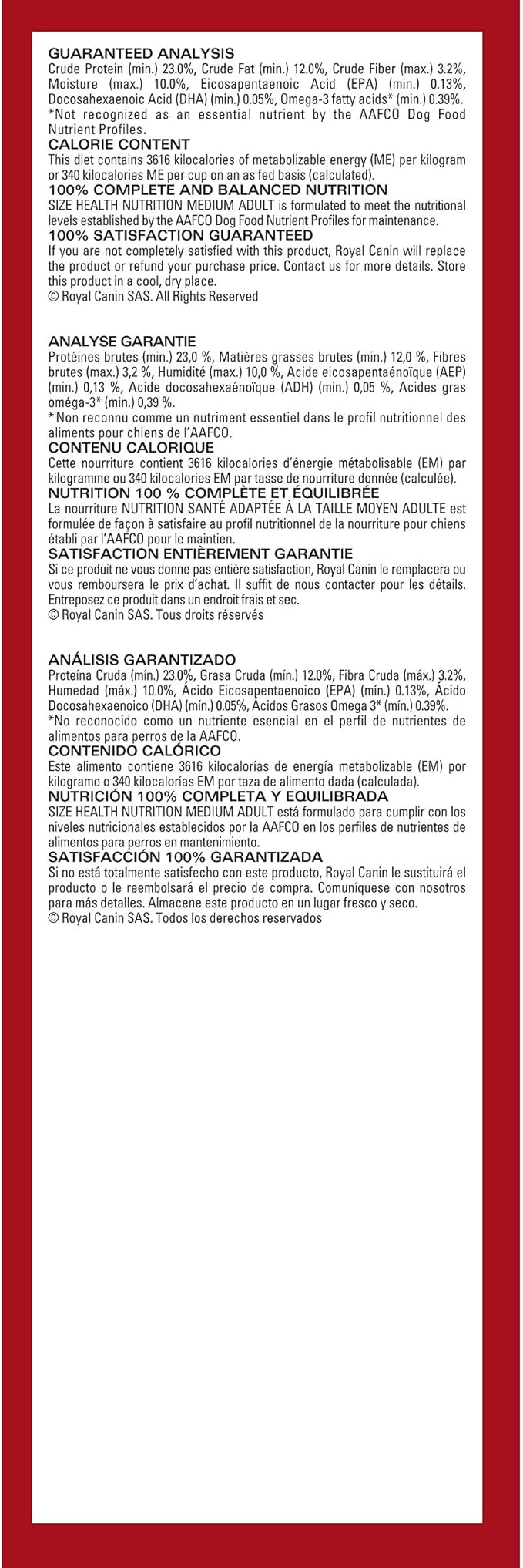 - MEDIUM BREED DOG FOOD: Royal Canin Medium Adult Dry Dog Food for medium dogs 1 year to 7 years weighing 23 to 55 lbs