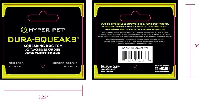 Hyper Pet Dura-Squeaks Stick Dog Toy, Large, Green