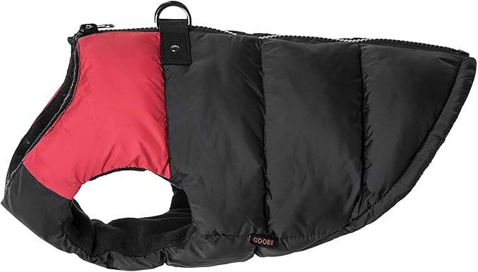 Gooby Padded Vest Dog Jacket - Red, Small - Warm Zip Up Vest Fleece Jacket with Dual D Ring Leash Water Resistant for Small to Medium Dogs