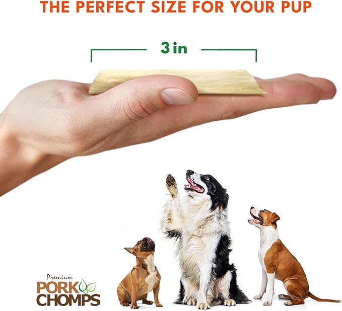 Pork Chomps Baked Pork Skin Dog Chews, 3-inch Chips, 12oz Bag