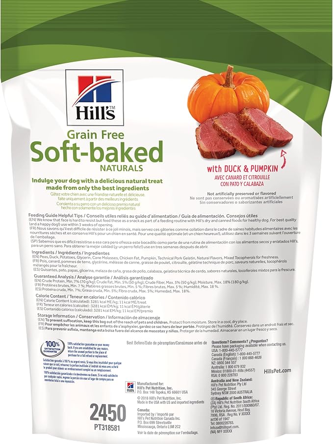 Hill's Grain Free Soft Baked Naturals, All Life Stages, Great Taste, Dog Treats, Duck & Pumpkin, 8 oz Bag