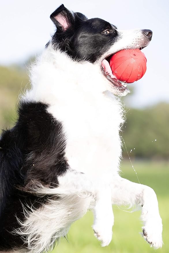 Nerf Dog Rubber Ball Dog Toy with Interactive Squeaker, Lightweight, Durable and Water Resistant, 4 Inch Diameter for Medium/Large Breeds, Single Unit, Red