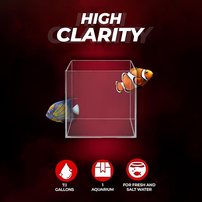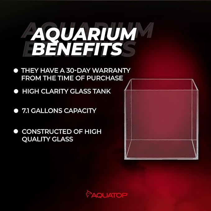 Aquatop High Clarity Low Iron Glass Cube Aquarium, 7.1 Gallon – 5mm Thick Glass – Slim Design – Ideal for Fresh & Saltwater – Desktop Tank with Silicone Sealing