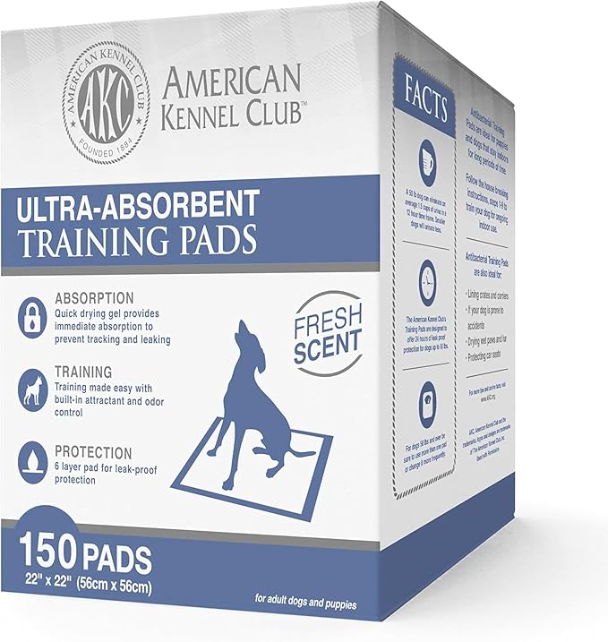 American Kennel Club Ultra Absorbent Odor Control Scented Training Pads For Dogs Leak-proof Quick Dry Gel – 22 x 22 Puppy Pads - Fresh Scented - Pack of 150