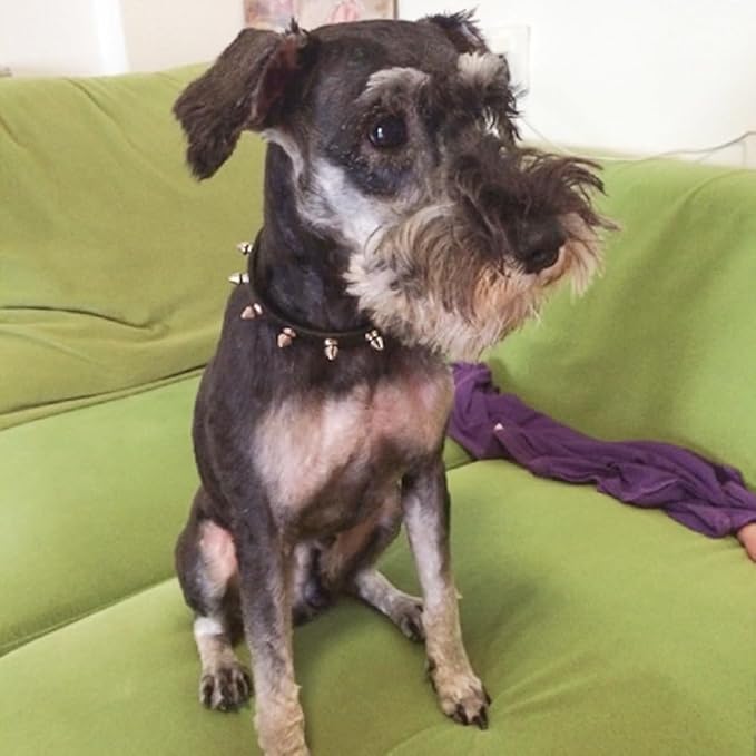 About This Enjoying small dog spiked collar made of PU microfiber leather (polyurethane) and polished silver spikes, reinforce sewing on... Read more