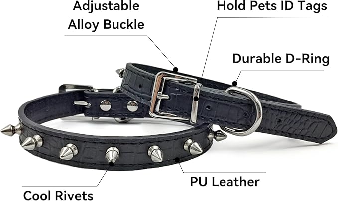 Enjoying Spiked Cat Collar, Leather Spikes Dog Collars for Cats Small Dogs, Adjustable Pet Collar with Rings, Black S