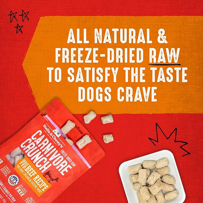 Stella & Chewy's Freeze-Dried Raw Dog Treats - Carnivore Crunch for Training - Natural Limited Ingredient, Grain-Free - Perfect for Picky Eaters - Grass-Fed Beef Recipe - 3.25 oz Bag